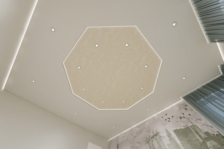 - Разнообразие. Бежевые потолки могут быть темнее и светлее вплоть до почти белого.