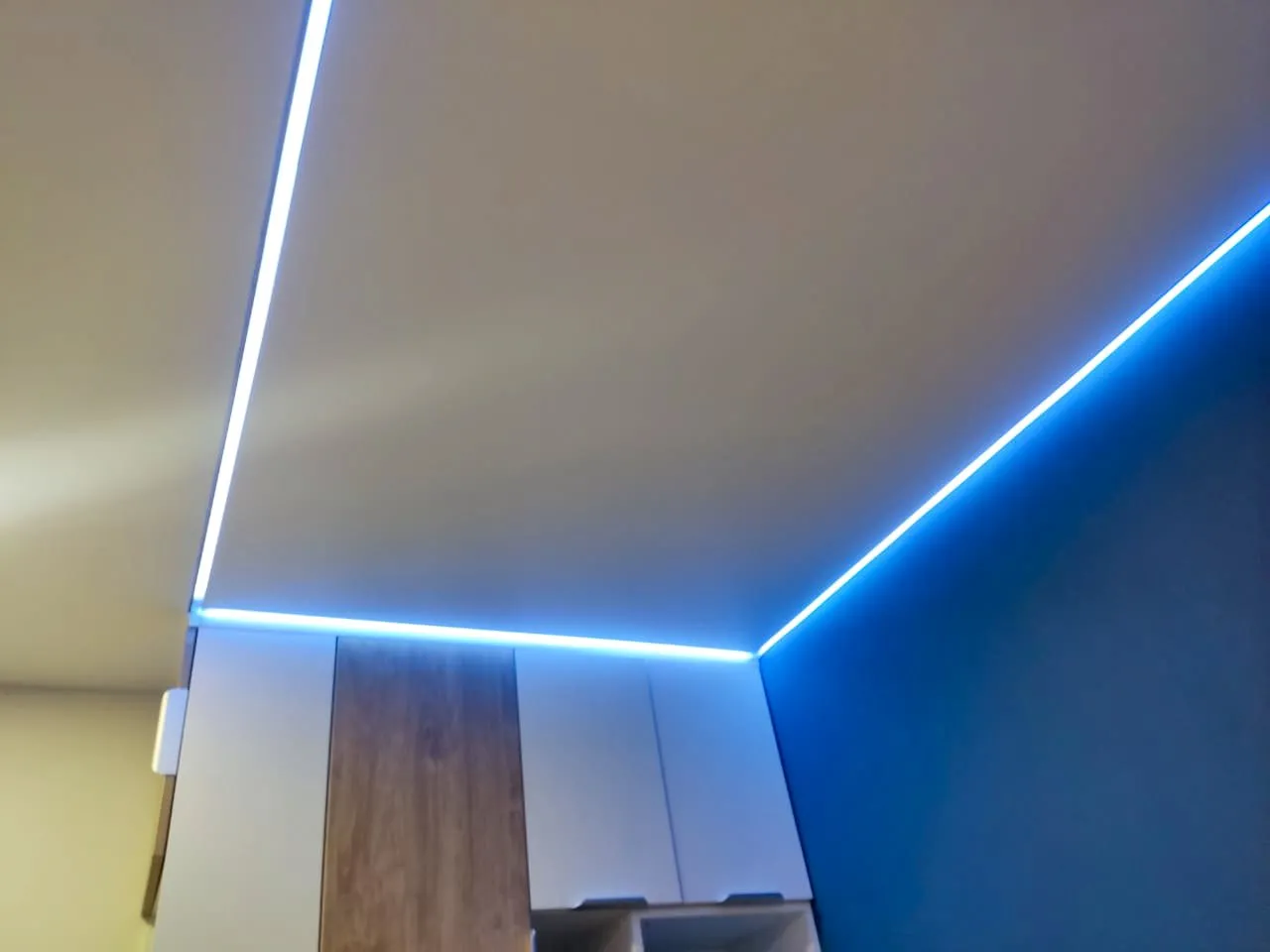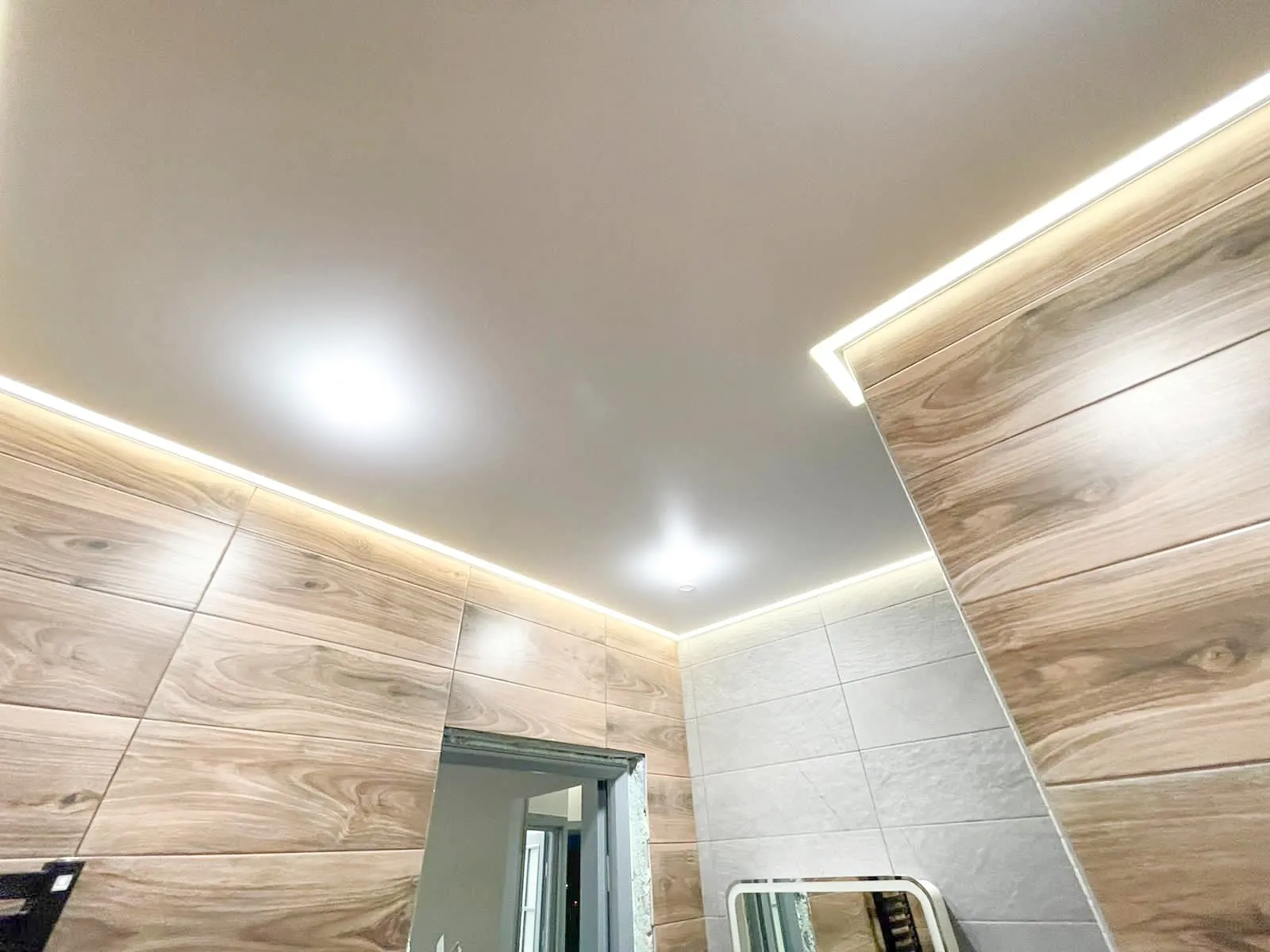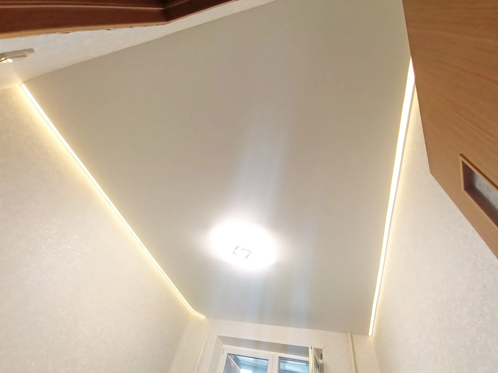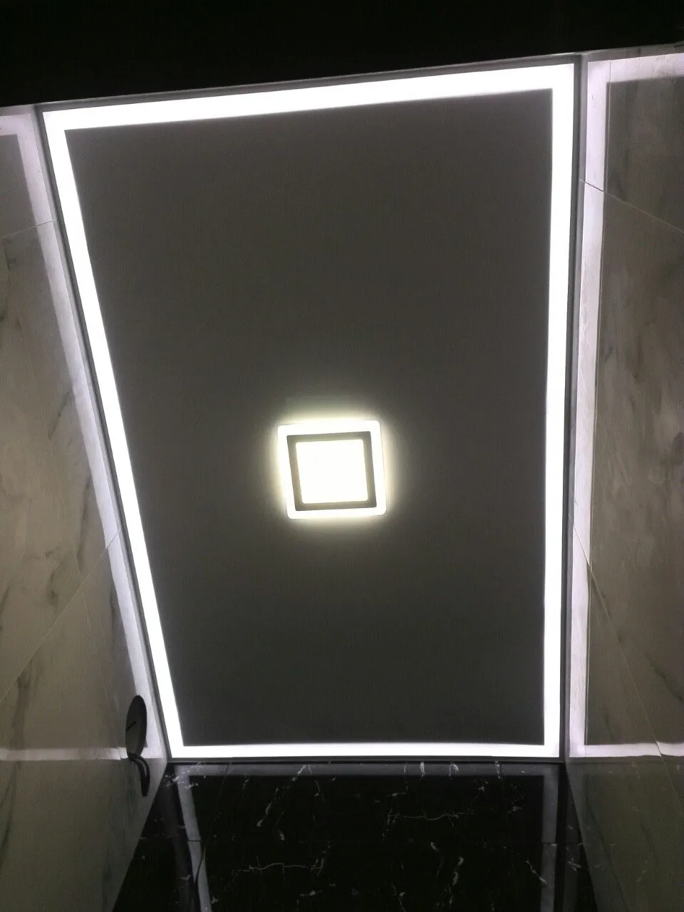 Сама подсветка может быть одноцветной и многоцветной. А натяжное полотно — пленочным или тканевым. ПВХ-пленки и тканевые покрытия по фактуре бывают глянцевыми, сатиновыми и матовыми. Выбор типа фактурной поверхности зависит от размера и стиля дизайна комнаты, личных пожеланий клиента.