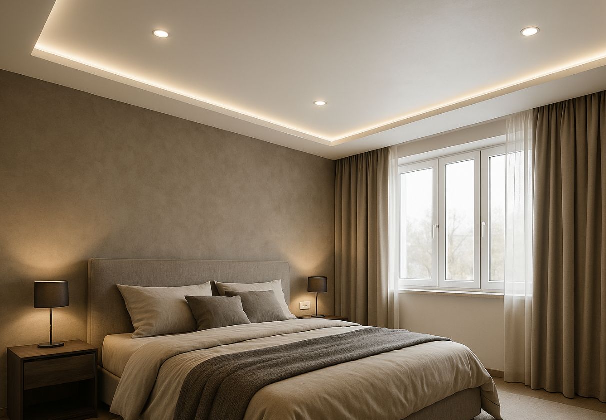 - парящий потолок (с контурной подсветкой);