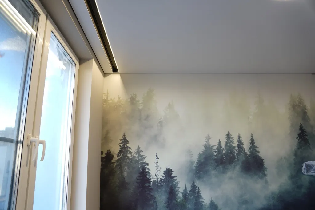 Сделали контурный натяжной потолок - выглядит круто. Рассматривали и теневой натяжной потолок, но в итоге выбрали контурном. Качество работы шикарное, потолок эффектный, интерьер сразу стал выглядеть дороже.