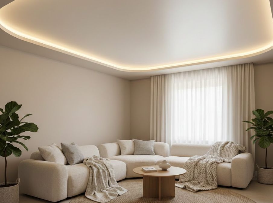 Итоговая цена зависит от площади, фактуры полотна, количества светильников, сложности геометрии (ниши, углы, обход труб), наличия скрытой подсветки и бренда материала. Глянцевые и матовые ПВХ-потолки сопоставимы по базовой стоимости (от 500 до 1800 руб/м² без монтажа), но дополнительные опции (LED-ленты, блоки питания, усиление под карнизы) увеличивают смету.