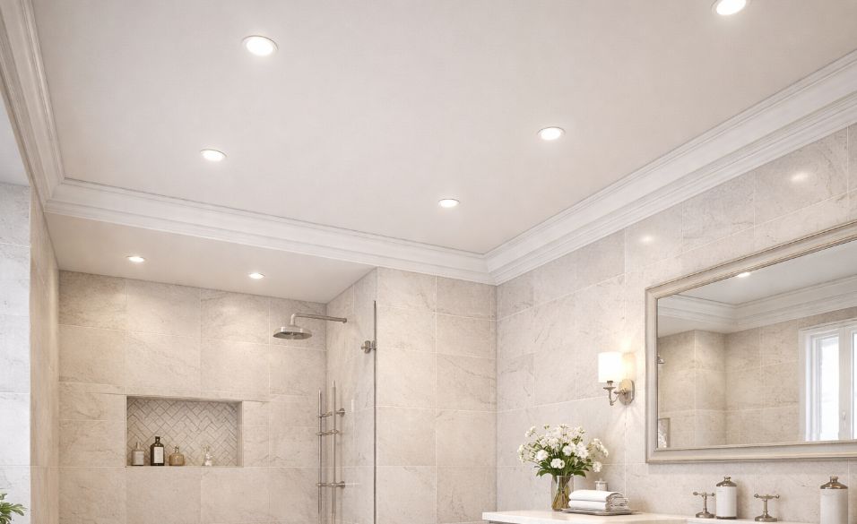 Индекс цветопередачи: CRI≥90 обеспечивает естественное восприятие оттенков плитки и отделки. Холодный свет (5000–6500К) усиливает стерильность, тёплый (2700–3000К) создаёт уют.